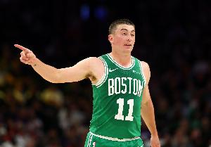 体育资讯4月27日讯 NBA季后赛,凯尔特人半场56-38领先76人。