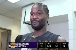体育资讯4月27日讯 NBA季后赛首轮G4,湖人96-115不敌火箭,系列赛大比分来到3-1。赛后艾顿接受了媒体采访,以下为采访全文。