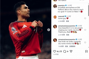 卡塞米罗社媒晒出展示曼联队徽的照片:“老特拉福德的氛围不可思议,我们非常接近达成目标,加油红魔!”