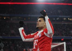 在经历了一场漫长的转会拉锯战后,他于上一个夏天以6510万英镑的身价加盟拜仁。此后,他交出了25个进球和20次助攻的亮眼答卷,并与凯恩(53球6助攻)及奥利塞(19球29助攻)组成了恐怖的前场三叉戟。