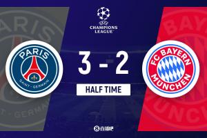 半场-巴黎3-2拜仁 K77、内维斯破门登贝莱传射凯恩、奥利塞建功