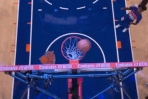 GIF-球迷中场投篮一球7万5 结果涮筐而出啊 好可惜啊