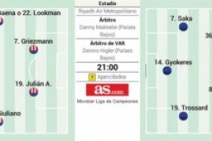 阿斯预测马竞vs阿森纳首发:阿尔瓦雷斯对决约克雷斯,埃泽替补