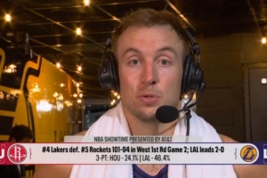 体育资讯4月22日讯 NBA季后赛,湖人在主场以101-94击败火箭,大比分2-0领先。赛后肯纳德连线演播室接受了媒体采访,以下为采访全文。