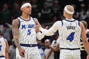 上半场,魔术内外线班凯罗和萨格斯都有出色发挥,两人打得都挺全能,其中班凯罗投篮8中4,罚球7中3,拿到11分4篮板5助攻1抢断;萨格斯投篮11中5,三分球7中3,罚球2中2,拿到15分5篮板3助攻。