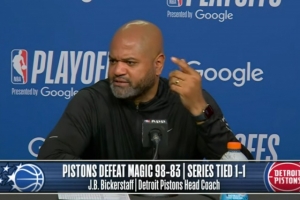 体育资讯4月23日讯 NBA季后赛,活塞98-83战胜魔术,大比分扳成1-1平。赛后,活塞主教练比克斯塔夫接受了采访,以下为采访全文。