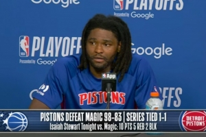 体育资讯4月23日讯 NBA季后赛,活塞98-83战胜魔术,大比分扳成1-1平。赛后,活塞球员以赛亚·斯图尔特接受了采访,以下为采访全文。