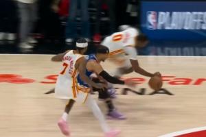 末节12.5秒,防守回合,尼克斯108-109落后老鹰1分,尼克斯手握球权,布伦森拿球被包夹,传出来之后,库明加从身后抢断,最终破坏掉尼克斯最后一攻,完成抢断绝杀,终结比赛悬念。