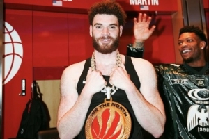 赛后猛龙官方晒出更衣室照片,贾米森·巴特尔获戴大金链子和球队金牌logo。