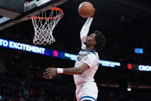 麦克丹尼尔斯首发出战41分钟,投篮13中9,三分球3中1,罚球1中1,拿下20分10篮板(4前场篮板)3助攻1抢断1盖帽,正负值+8。