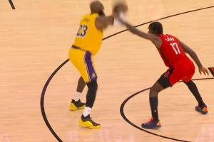 相关新闻:偷袭小同志!老詹示意压节奏 随后突然启动 空切暴扣杀死比赛!