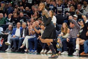 生死拉锯时段,穆雷挡拆接管连拿5分,道苏姆强势回应,单打三分收比赛,全场爆砍43分,超神表现杀人诛心。