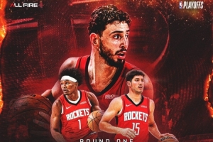 火箭官方发布预热海报,封面为申京、阿门和谢泼德。